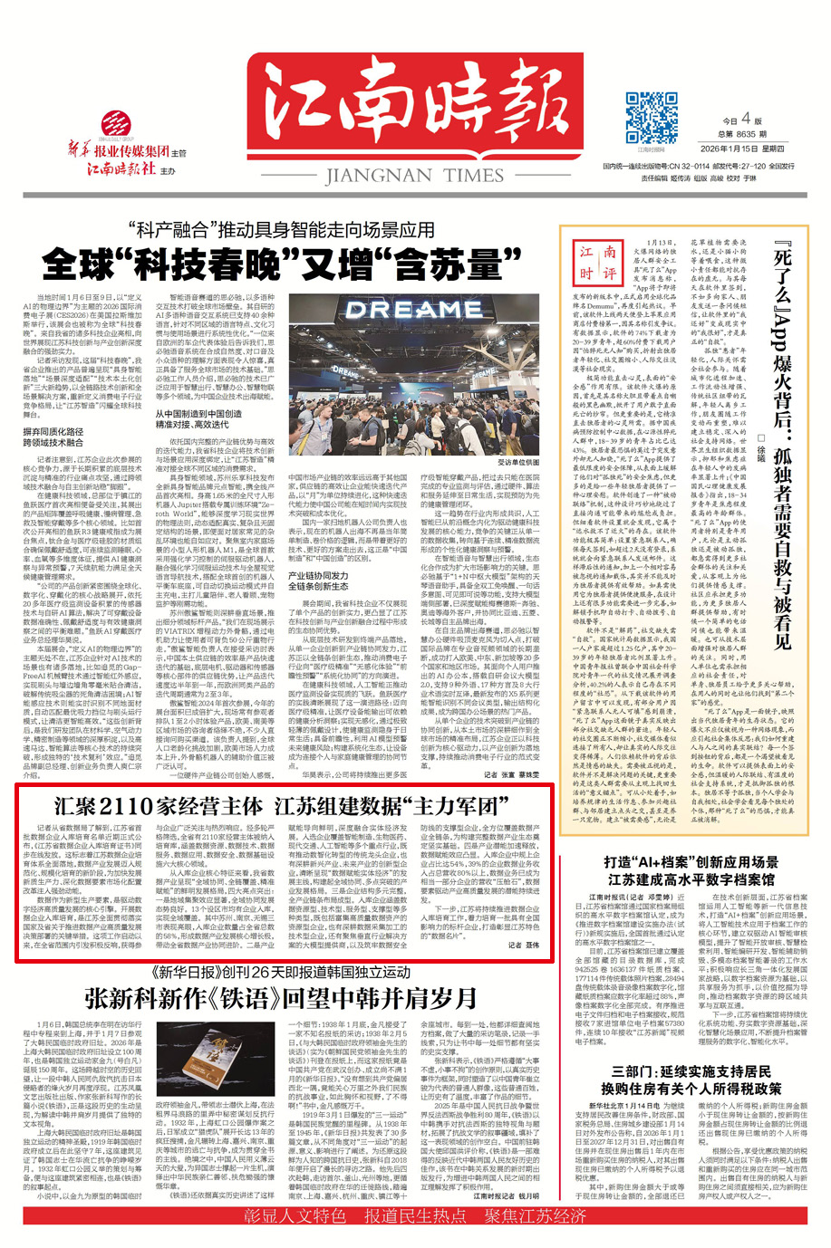 记者从省数据局了解到,江苏省首批数据企业入库培育名单近期正式公布,《江苏省数据企业入库培育证书》同步在线发放。这标志着江苏数据企业培育体系全面落地,数据产业发展迈入规范化、规模化培育的新阶段,为加快发展新质生产力、深化数据要素市场化配置改革注入强劲动能。