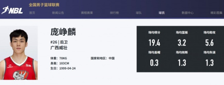 值得一提的是,庞峥麟目前的场均得分和篮板均比上赛季在广西威壮效力时高。庞峥麟上赛季在NBL场均得到19.4分3.2篮板5.6助攻。